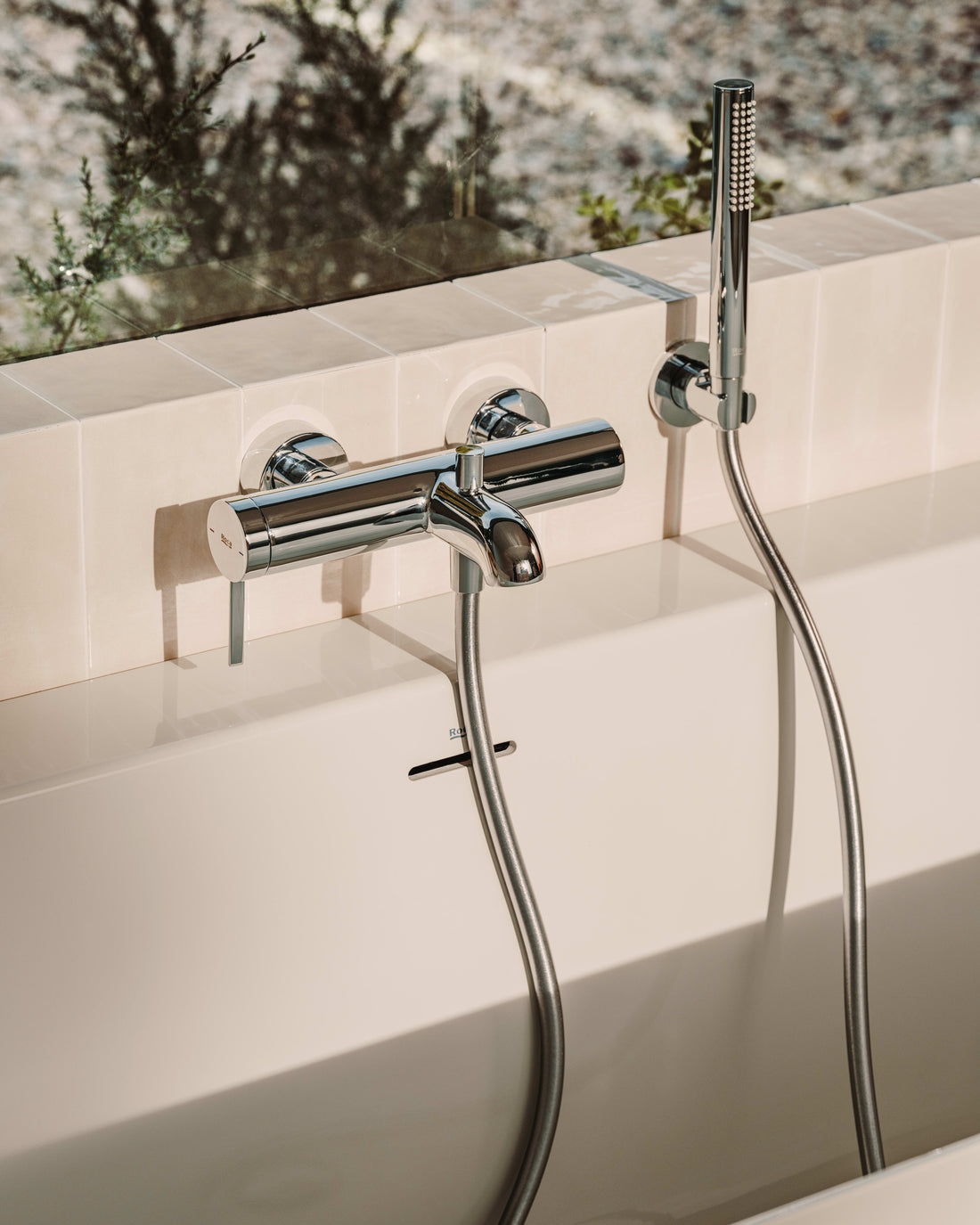 Roca ofrece cromo clásico, negro mate, blanco mate, oro cepillado, oro rosado, níquel cepillado y titanio Everlux, con alta resistencia al desgaste y a la corrosión.