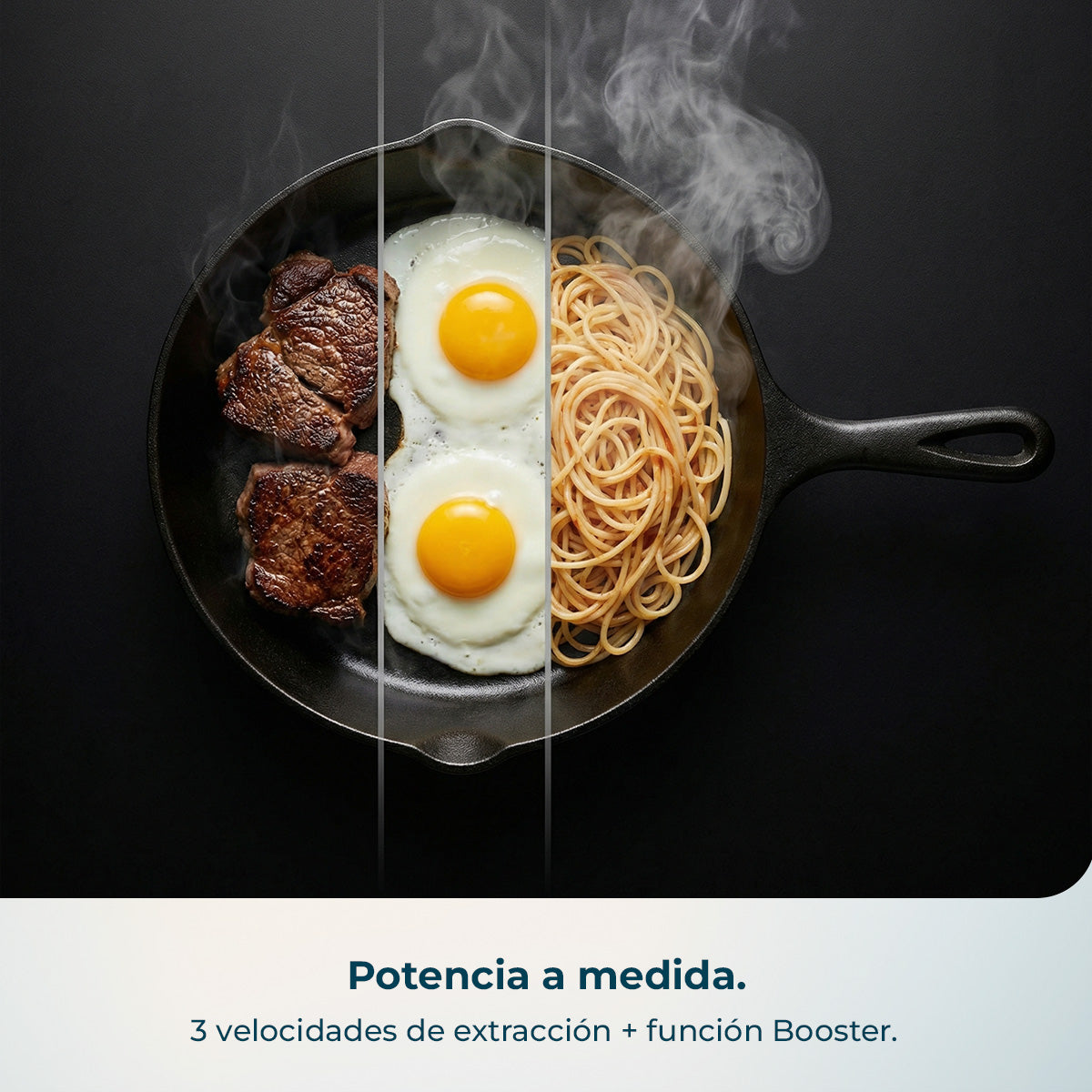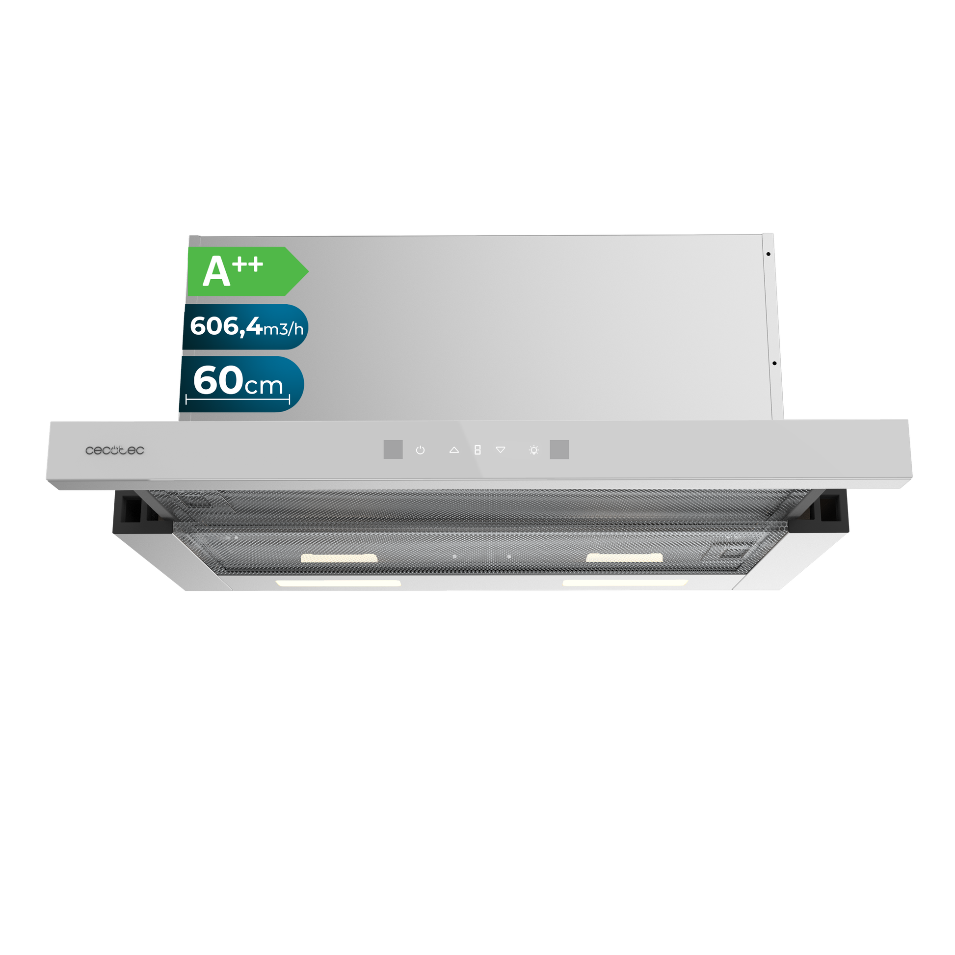 - Iluminación LED de bajo consumo y Booster para adaptar la extracción a cualquier cocina.
