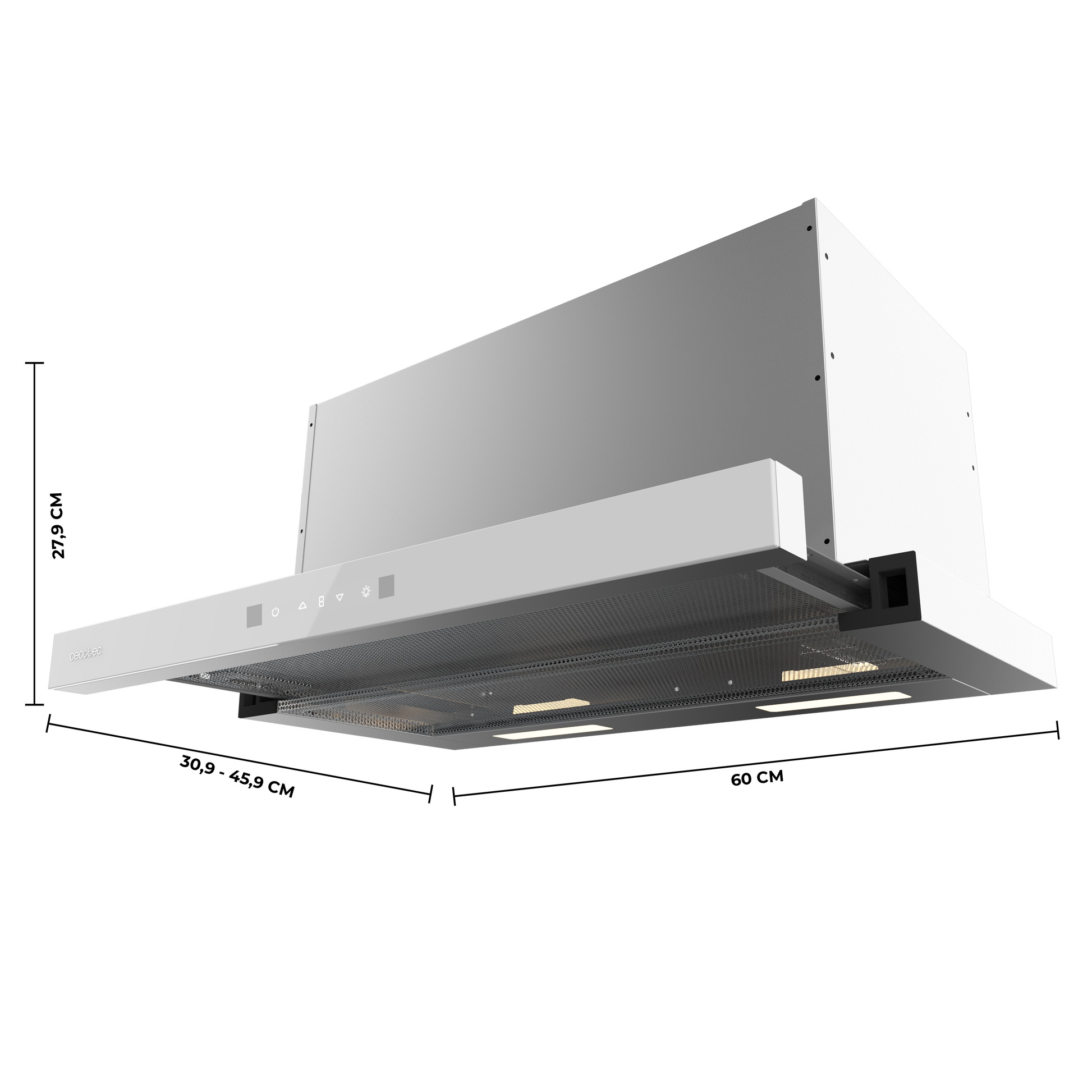 Campana Extractora Cecotec Bolero Flux TLT 60 cm Frontal Cristal Blanco Y Cuerpo Inoxidable 606 m3h