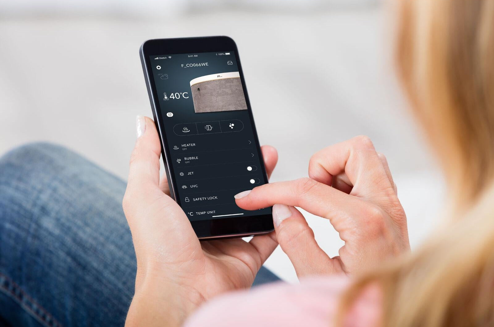 MSpa App Link: Maximale Kontrolle von Ihrem Mobilgerät. Stellen Sie die Temperatur ein, aktivieren Sie die Düsen, programmieren Sie die Beheizung und erhalten Sie Benachrichtigungen – alles von Ihrem Smartphone aus.