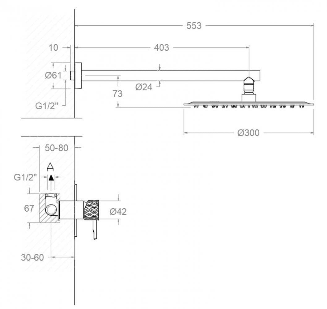 Ramon Soler - Odyssey Jewel, Monomando Embedded Set 1 Pfad mit Metallsprinkler Ø300 mm, gebürstetes Kupfer