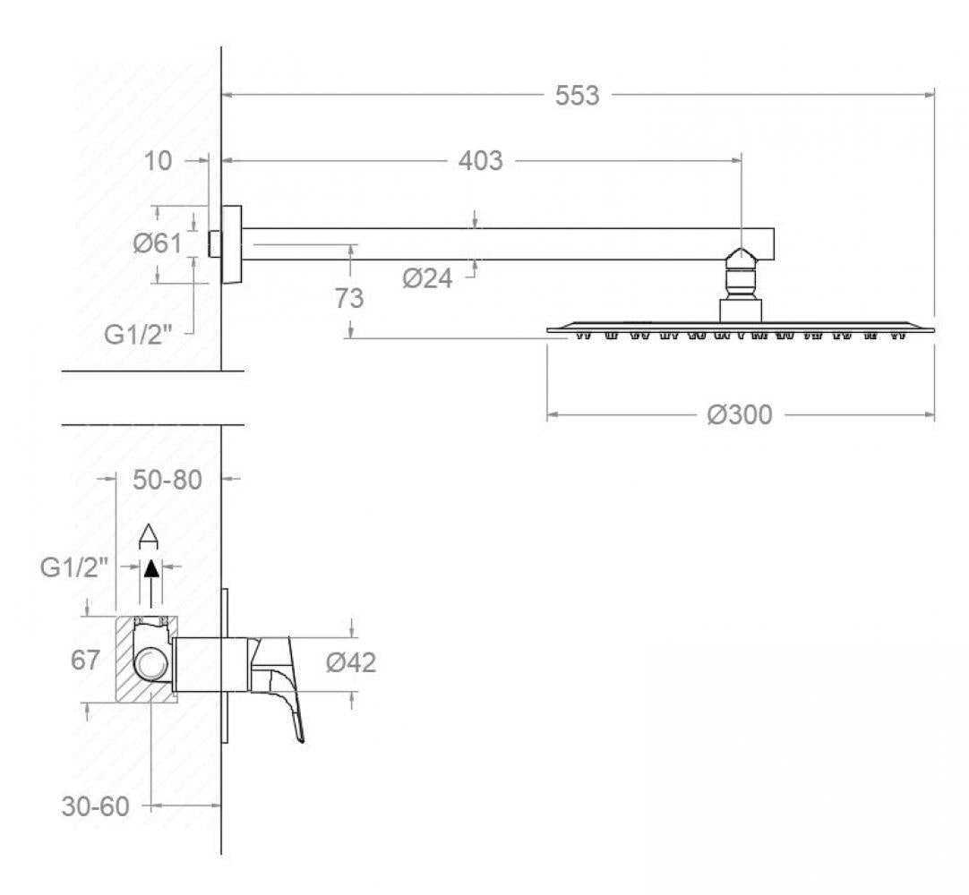Ramon Soler - Urban Chic, metallische Empolte Monomando Set 1 Way mit Metallic Sprinkler Ø300 mm, Matt Black