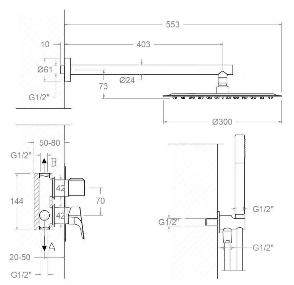 Die Duschsäule mit Kopfbrause, Handbrause, Handlauf und integriertem Wasserhahn. Die Duschset umfasst in der Regel eine Handbrause, einen Schlauch und eine Halterung, die als wirtschaftliche und funktionelle Ergänzung konzipiert sind.