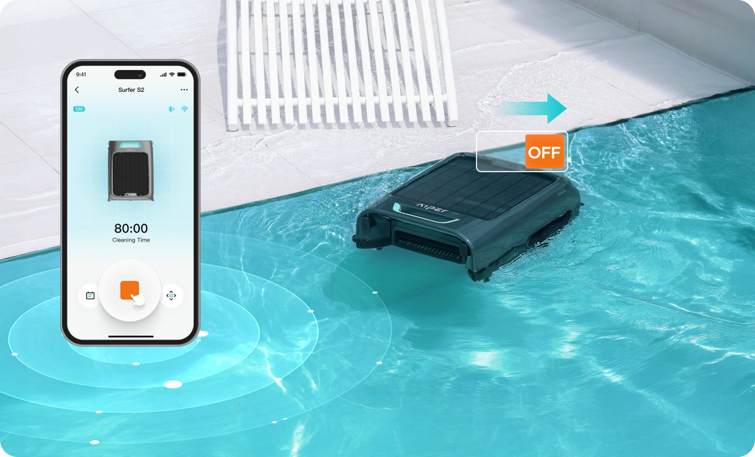 Aiper , le Surfer S2 navigue intelligemment dans votre piscine, évitant les obstacles et garantissant une couverture de nettoyage complète, même le long des bords et des coins difficiles d'accès. - Nettoyage Puissant et Efficace: Le Surfer S2 est équipé d'un moteur sans balais amélioré et d'une grande entrée d'aspiration, fournissant une aspiration puissante pour capturer une large gamme de débris, des grandes feuilles et brindilles à la saleté fine et au pollen.