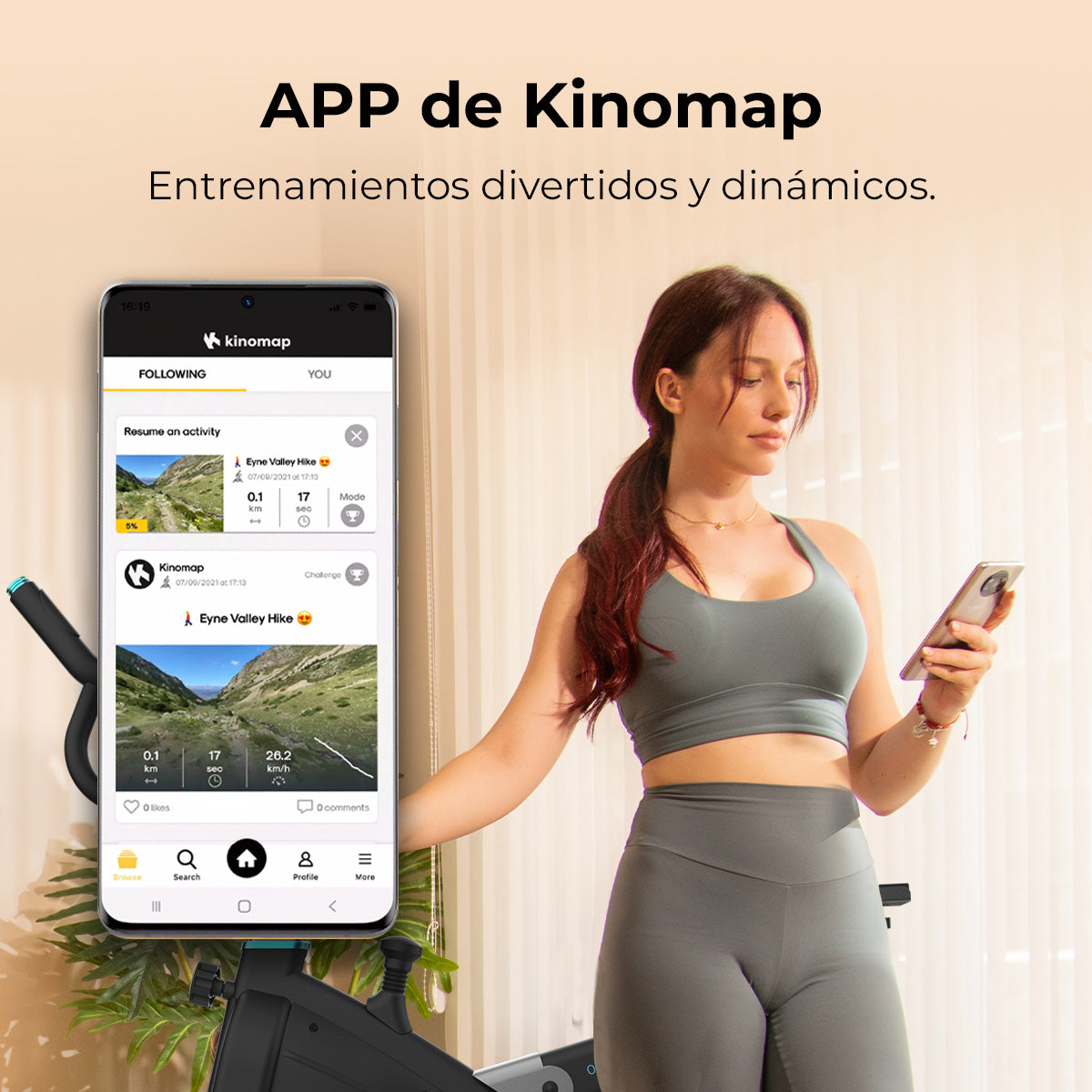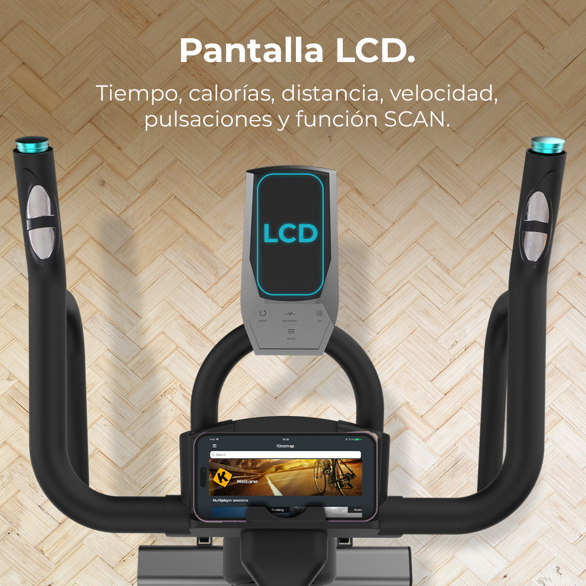 - Conexión Kinomap para competición en línea, seguimiento de entrenamientos y exploración de rutas.