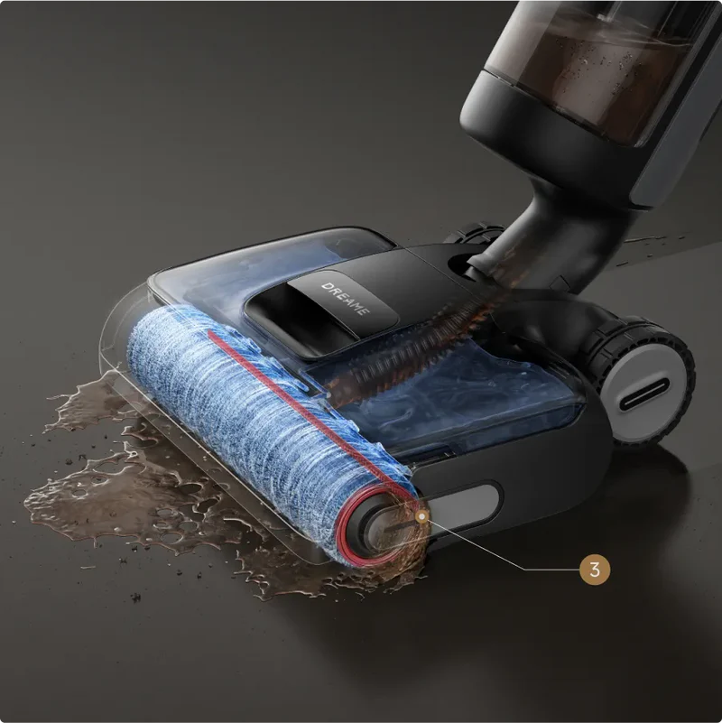 El cepillo de doble rotación del H15 Pro imita el lavado a mano y se combina con el raspador especial para evitar enredos de pelos y mantener limpia la cubierta del cepillo, lo que ahorra tiempo y esfuerzo.