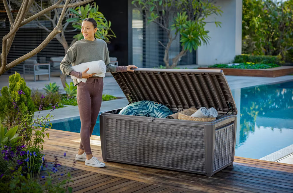 El arcón de exterior de ratán Sumatra en color marrón whisky es una solución práctica y elegante para mantener el almacenaje exterior siempre organizado. Su diseño tipo ratán encaja en terraza, patio o jardín, y está pensado para un uso continuado en exterior con limpieza sencilla y un acabado que se mantiene con el paso del tiempo.