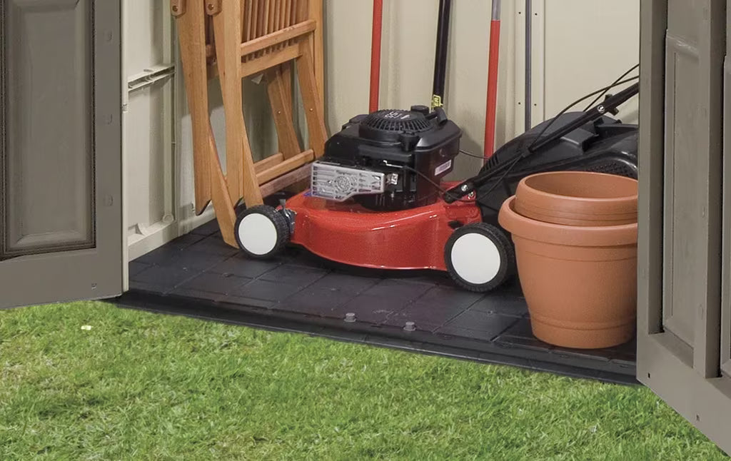 Cabane Factor 8x11 en couleur marron/beige, grande capacité, idéale pour ranger outils, machines ou mobilier de jardin. Son design effet bois allie fonctionnalité, esthétique et résistance maximale.