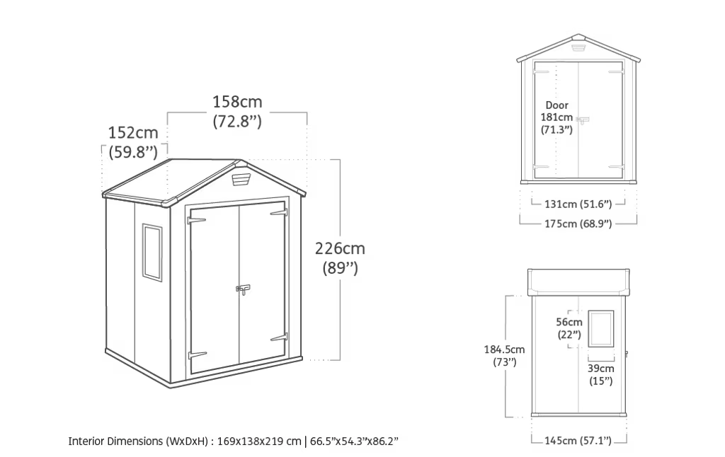 - Dimensions extérieures : 185 × 152 × 226 cm