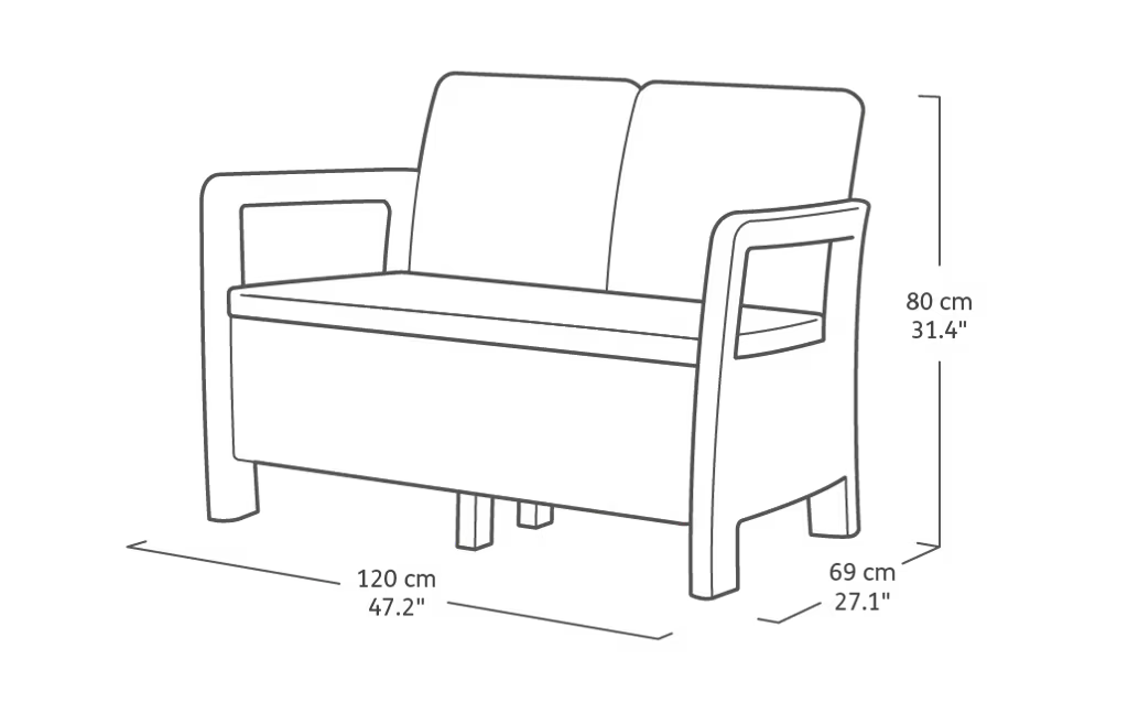 - Dimensions canapé : 120 × 69 × 79 cm / table : 77 × 55 × 40 cm