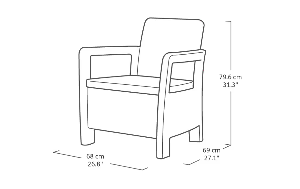 - Dimensions du fauteuil : 71 × 69 × 79 cm