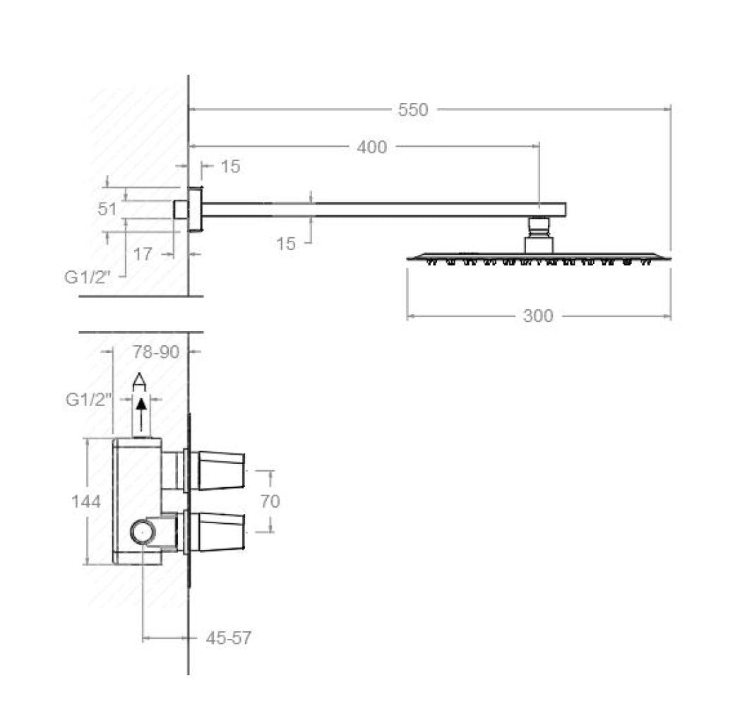Ramon Soler - Prisma, ensemble thermostatique de douche bouclée 1 chemin avec pulvérisateur en métal 300 mm, Matt Black