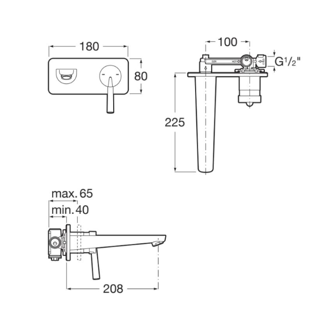Roca - Mixer Monomando construit pour PALS A5A356DC00. À compléter avec un corps emboable universel A525220603