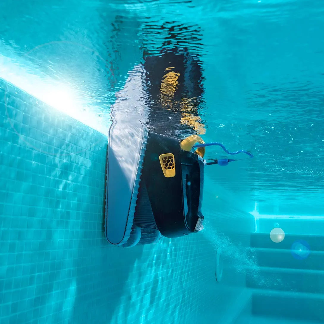 È progettato per piscine fino a 15 metri ed esegue la pulizia completa: fondo, pareti e linea di galleggiamento in cicli programmabili.