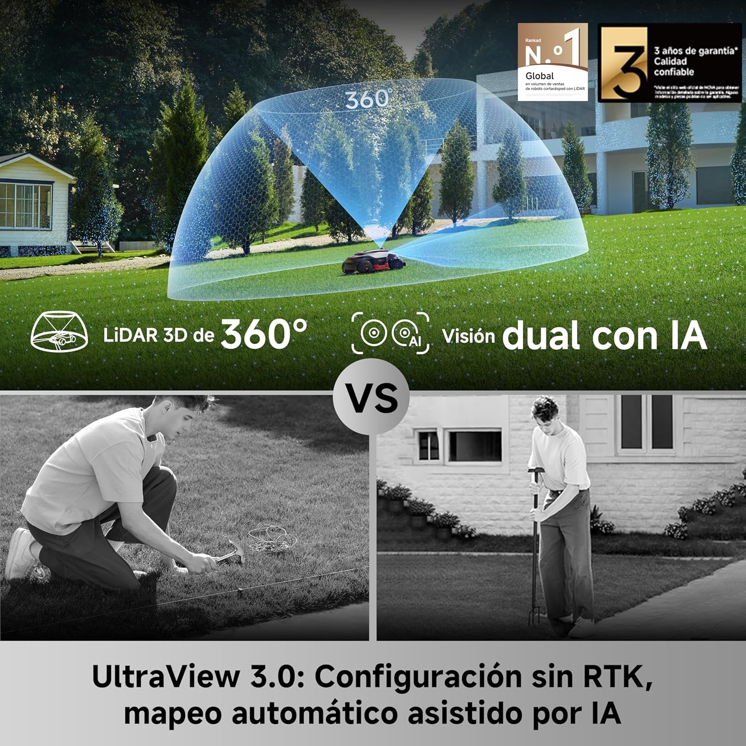 Navigazione e mappatura: UltraView™ 3.0 con LiDAR 3D a 360° e visione duale con IA.
