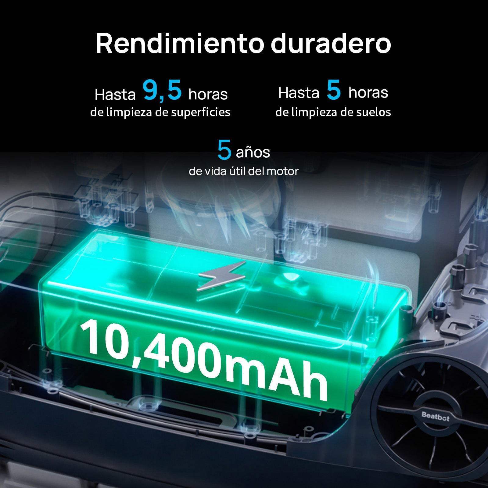 - Batería de 10.000 mAh para hasta 4 horas de limpieza continua.