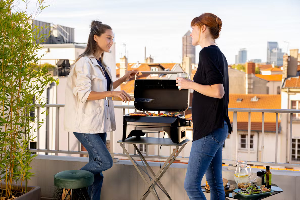 La barbacoa eléctrica Campingaz Attitude 2go Electric es compacta, práctica y potente. Con 2.200 W de potencia y superficie de cocción de 1.200 cm², garantiza resultados uniformes y rápidos. Su diseño portátil permite transportarla fácilmente, mientras que el sistema de bandeja recoge-grasas facilita la limpieza, ideal para balcones y terrazas urbanas.
