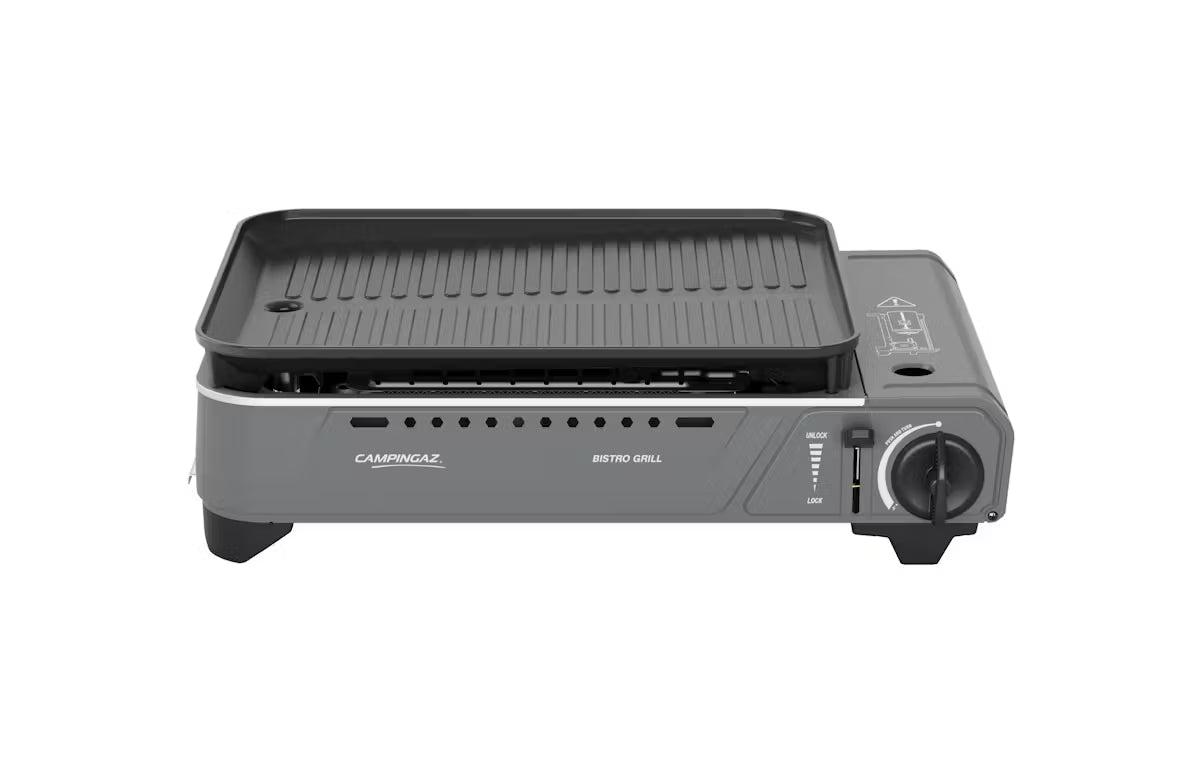La Plancha Bistro Grill Campingaz es compacta, potente y versátil, ideal para cocinar al aire libre con facilidad. Con 2.000 W de potencia y consumo eficiente de 137 g/h, permite preparar carnes, pescados y verduras de forma rápida y uniforme. Su diseño portátil y ligero facilita el transporte y la limpieza.