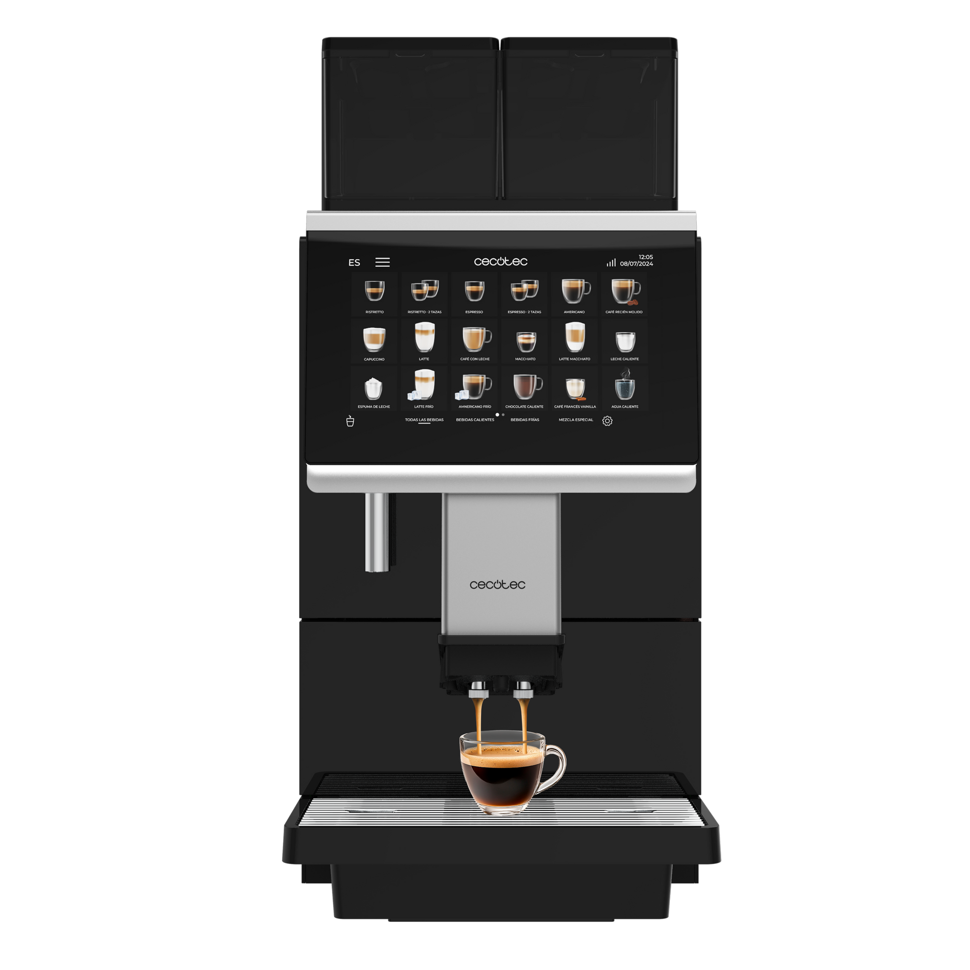 Cecotec Cremmaet Lounge transforma la pausa en oficina en una experiencia de barista. Esta cafetera superautomática de 2900 W combina ingeniería avanzada y materiales premium para ofrecer 35 bebidas, más la opción DIY, con crema y aroma de alto nivel. La doble caldera mantiene la temperatura óptima para cada preparación, mientras la pantalla táctil de 10,1 pulgadas, antihuella, facilita seleccionar y personalizar con un solo toque. Dos tolvas de café en grano de 700 g y depósitos de cacao y leche en polvo de 1,8 L amplían la versatilidad para equipos diversos. Un molinillo de cerámica de precisión y un conector para leche fresca aseguran molienda constante y texturas cremosas en cada taza.