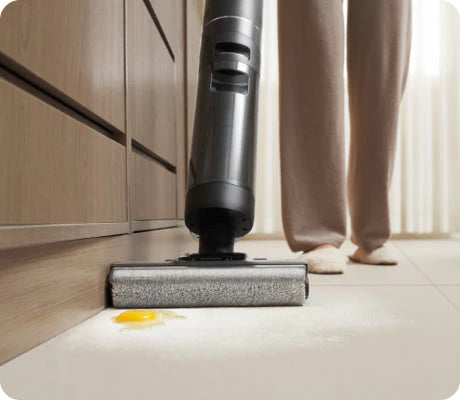 Limpia eficazmente junto a los rodapiés para recoger líquidos derramados y eliminar manchas sin dejar residuos. Gracias a su diseño de limpieza de esquina a esquina, el cepillo cubre toda la base del aspirador en seco y húmedo, adaptándose a las paredes y alcanzando con precisión las esquinas.