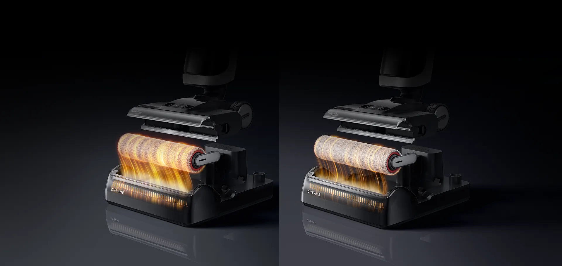 El H14 Pro se toma la limpieza muy en serio y lo demuestra con la función de lavado con cepillo a 60°C. El sistema PTC calienta rápidamente el agua limpia a 60 °C para disolver la suciedad, especialmente las manchas de aceite y la salsa de chocolate, a medida que el cepillo gira.