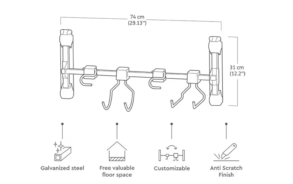 - Permite colgar herramientas, cables, mangueras o accesorios de jardín