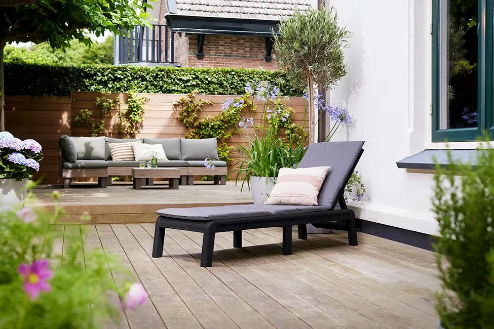 Keter - Tumbona de exterior Mallorca con cojín gris/gris