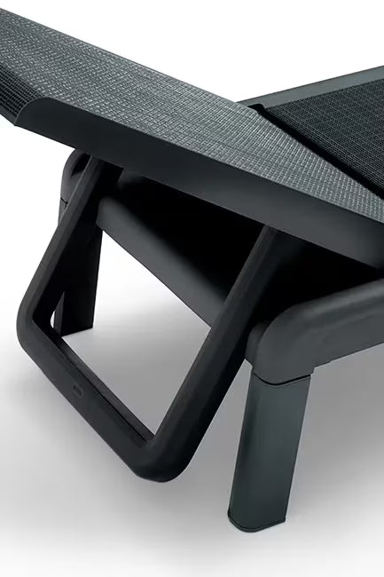 Tumbona Mallorca en color gris con cojín a juego, ideal para terrazas, jardines o piscinas. Ofrece estilo, comodidad y gran durabilidad frente a las condiciones del exterior.
