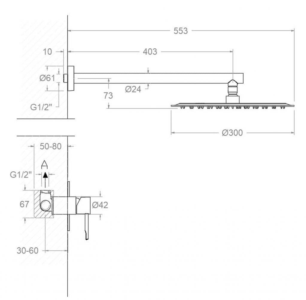 El conjunto empotrado Ramon Soler Odisea monomando de 1 vía con rociador metálico Ø300 mm en acabado cromo combina diseño contemporáneo, precisión y funcionalidad. Fabricado en latón cromado de alta calidad con acabado Diamond Finish, ofrece una excelente resistencia a la humedad, la cal y la corrosión, manteniendo su brillo impecable con el paso del tiempo. Incorpora un cartucho cerámico de precisión Ø35 mm, que permite un control suave y exacto del caudal y la temperatura, garantizando un uso cómodo y eficiente. El rociador metálico Ø300 mm tipo lluvia proporciona una caída de agua envolvente y relajante, ofreciendo una experiencia de ducha placentera y confortable.