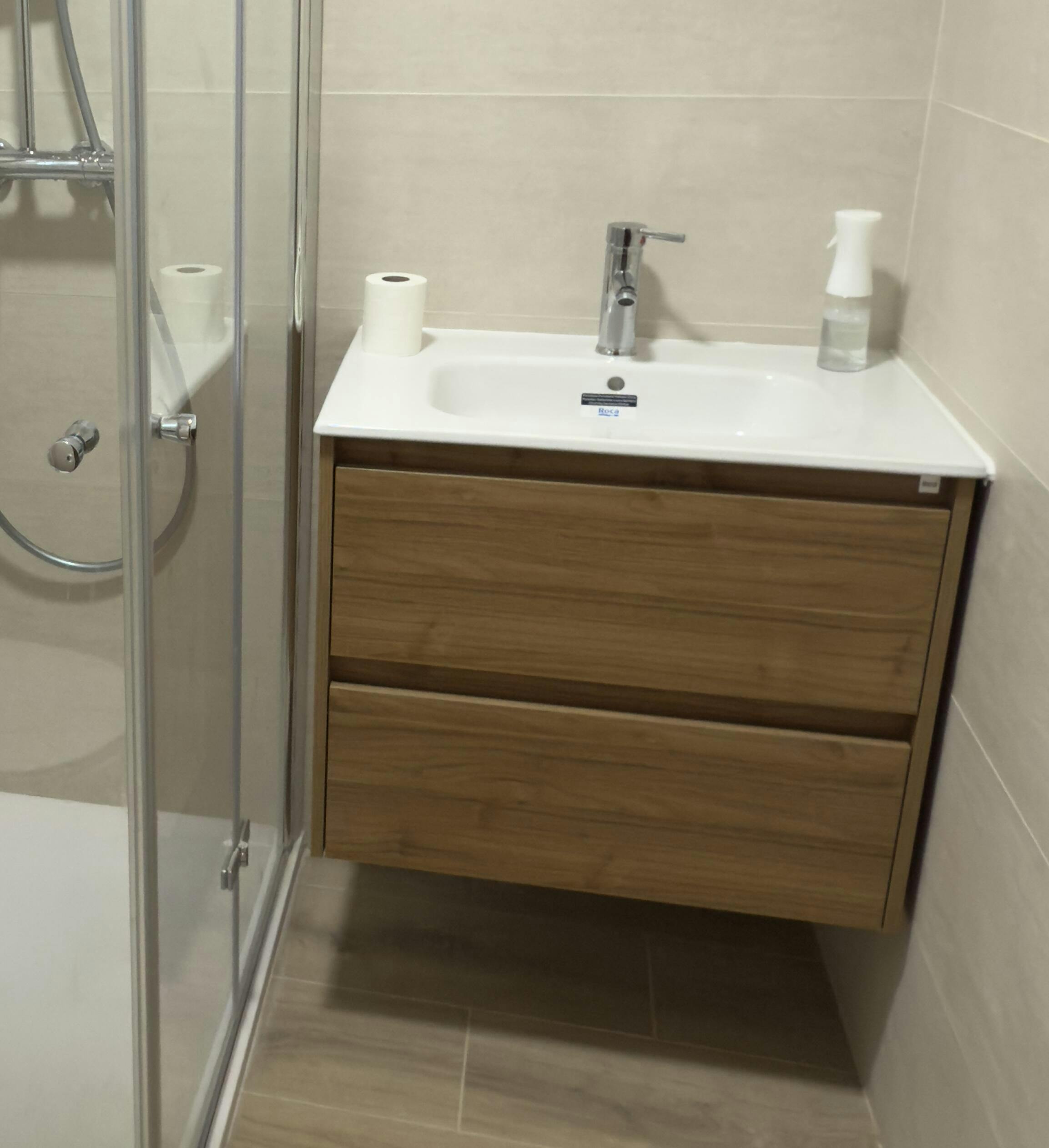 - Plato de ducha: práctico, seguro, antideslizante y perfecto para espacios reducidos.