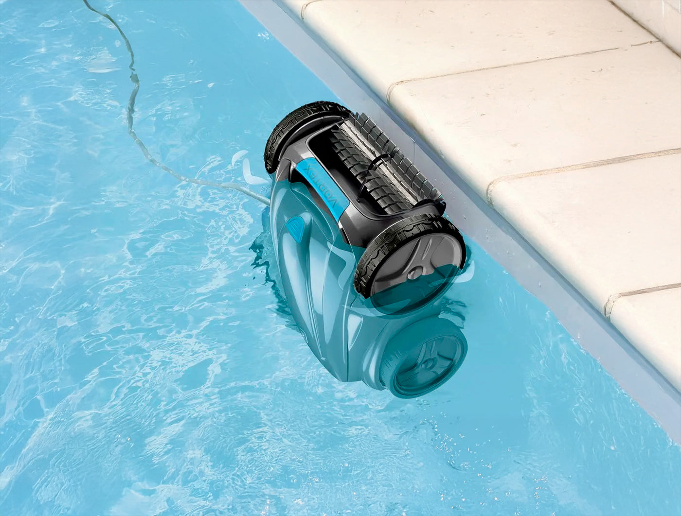 Equipado con cuatro ruedas motrices, este modelo asegura una adherencia óptima a las paredes de la piscina.