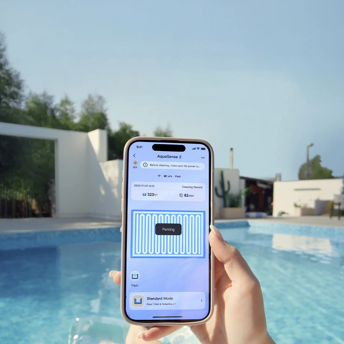 - Veja o mapa da piscina: Verifique o mapa criado pelo robô para verificar a cobertura e o andamento da limpeza.