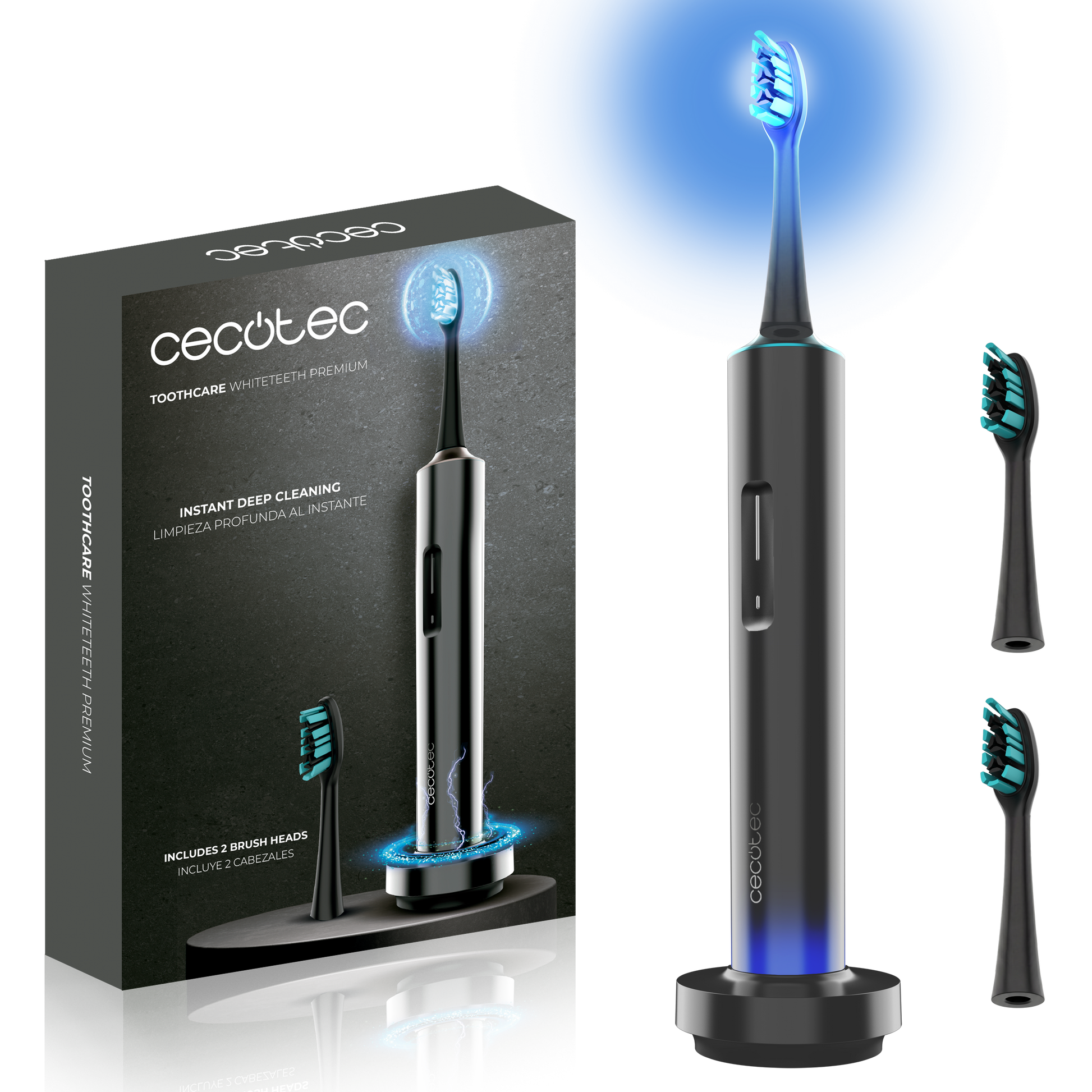 Cecotec ToothCare WhiteTeeth Premium Cepillo Eléctrico Luz Azul Integrada Recargable Cabezales Intercambiables