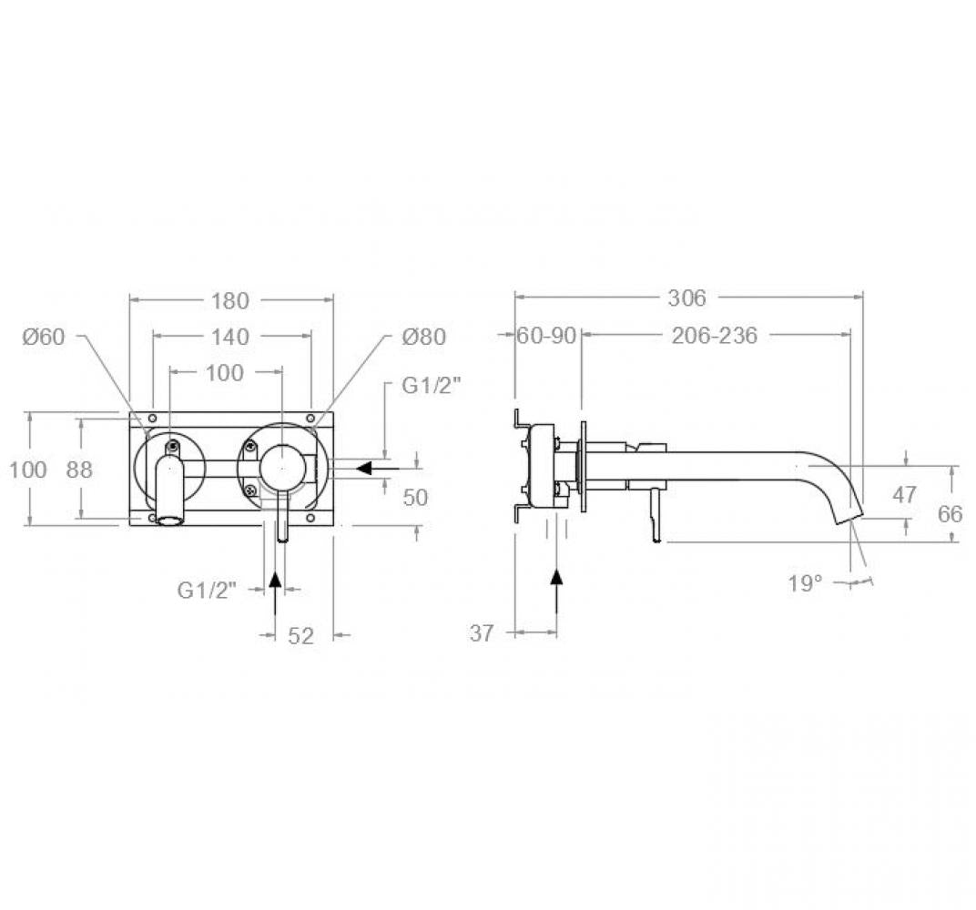 Ramon Soler - odisseia, monoma e parede embutida na parede com um tubo de 24 cm, cromo